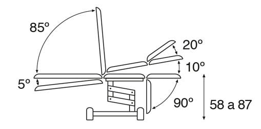 - Verstellung Beinteil manuell über Hebel von +20º bis -90º