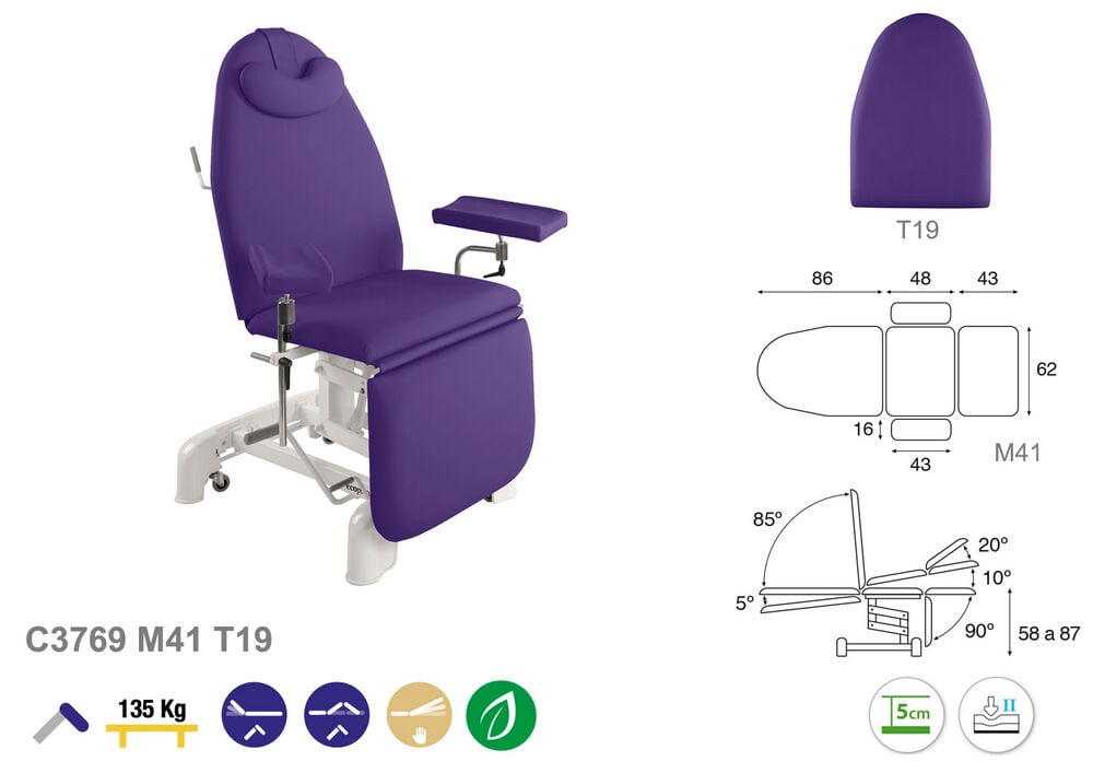 - Hydraulisch höhenverstellbarer Blutentnahme- und Behandlungsstuhl