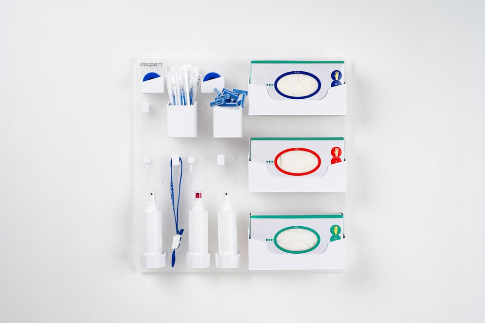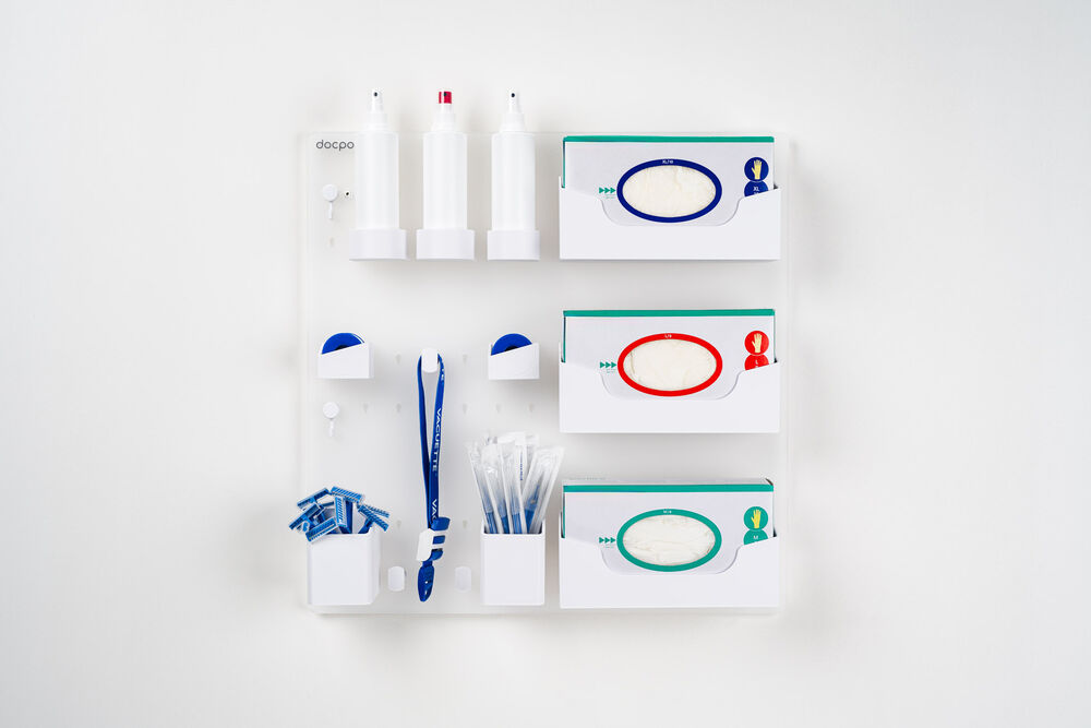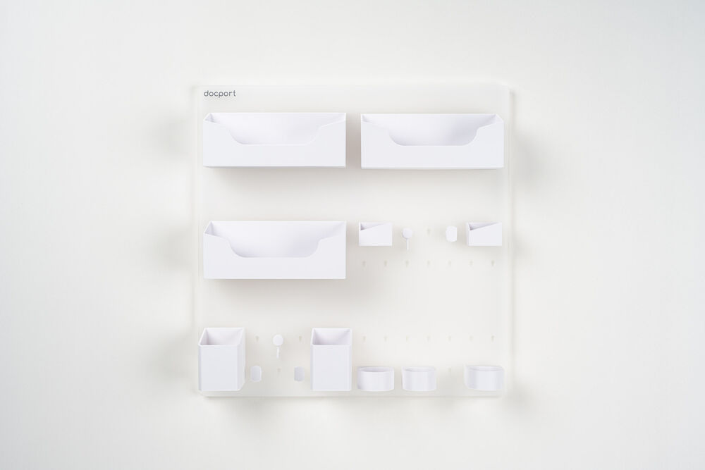 - Großformatige Lösung – Die 58 × 58 cm Wandplatte bietet umfassend Platz für eine vollständige Versorgungsmaterial-Organisation.